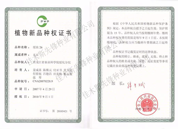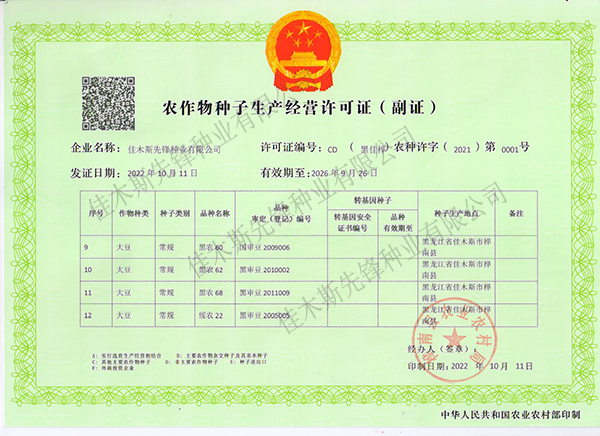 走進我們 COME INTO US 您現在的位置:網站首頁 > 走進我們 >資質榮譽 公司簡介 企業文化 領導致辭 資質榮譽 農作物種子生產經營許可證(副證) 黑農48省農作物品種合格證書 黑農48植物新品種權證書 綏農26植物新品種權證書 東生51審定證書 綏農53審定證書 共30條記錄 當前為第2頁/共5頁上一頁12345下一頁